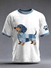 Men's Denim Patchwork Art Dachshund Dog Pattern Washed T-Shirt