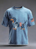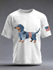 Men's Denim Patchwork Art Dachshund Dog Pattern Washed T-Shirt