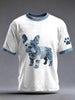Men's Denim Patchwork Art French Bulldog Pattern Washed T-Shirt