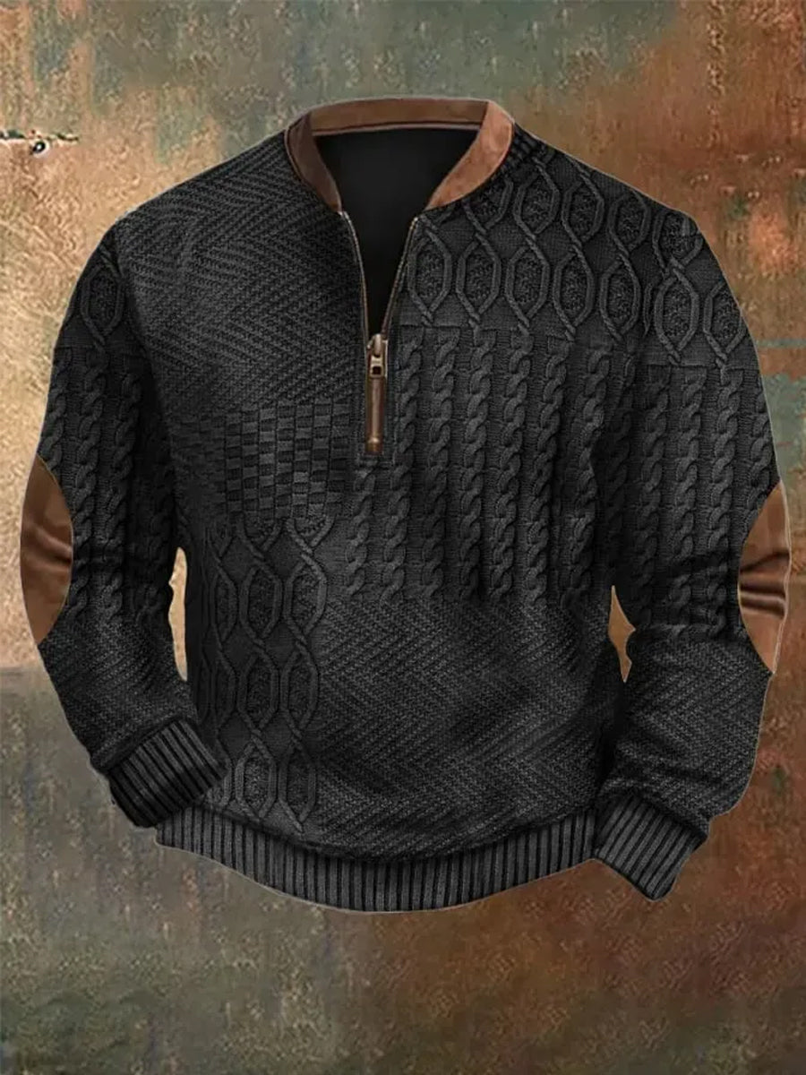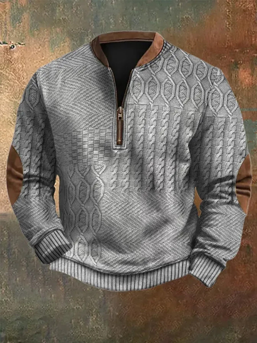 Men's Vintage Cable Pattern Print Casual Zipper Sweatshirt