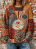 Women's Artistic Cat Print Vintage Tops
