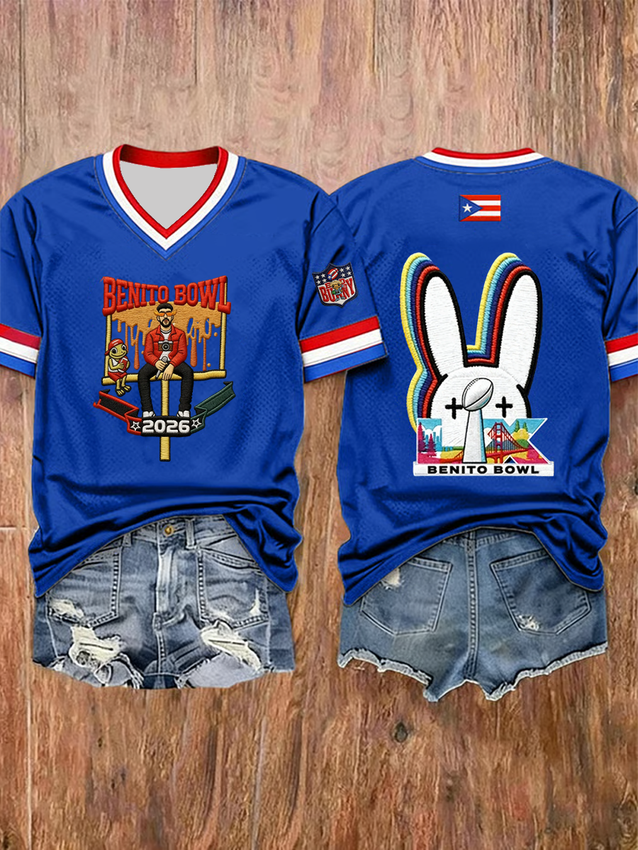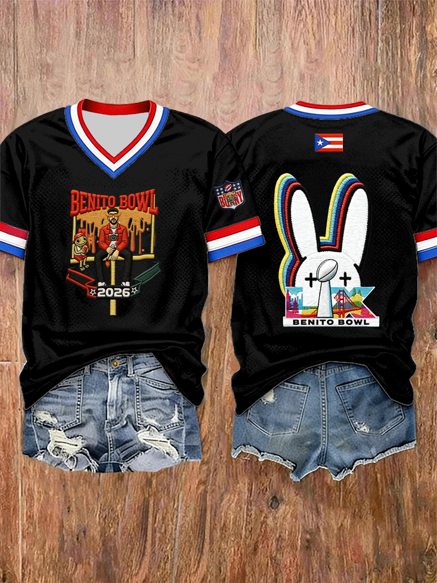 Women's Bunny Football Music Lover Printed short-sleeved T-shirt