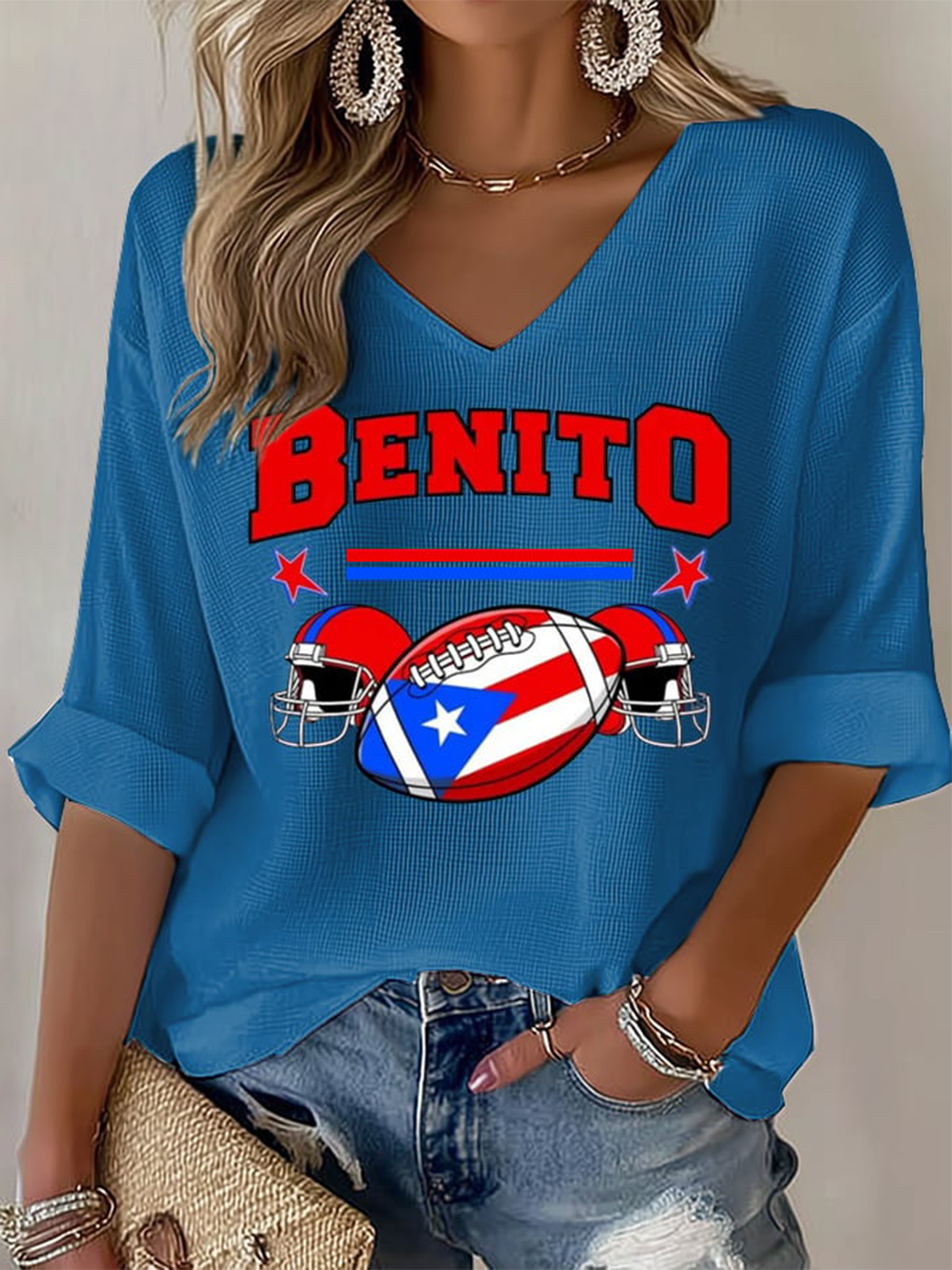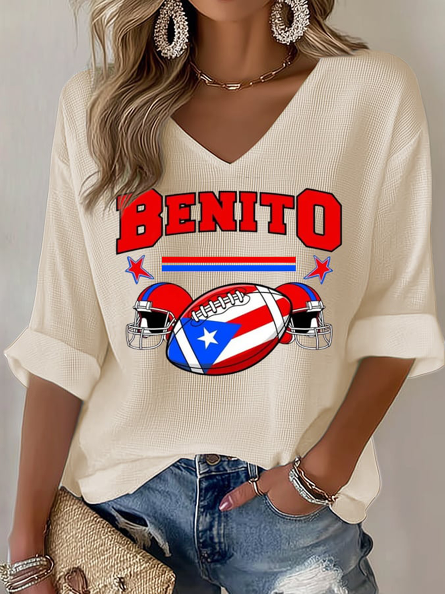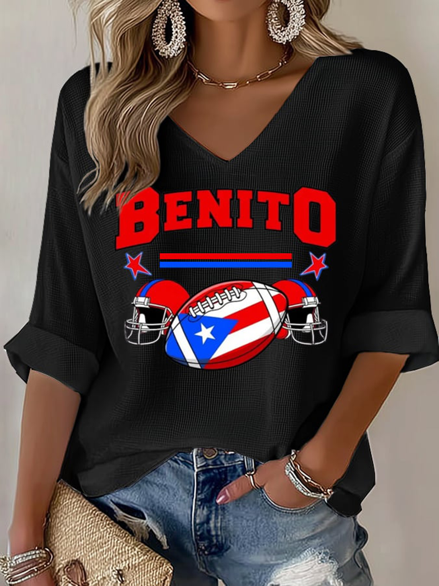 Women's Bunny Football Music Lover Printed Waffle T-shirt