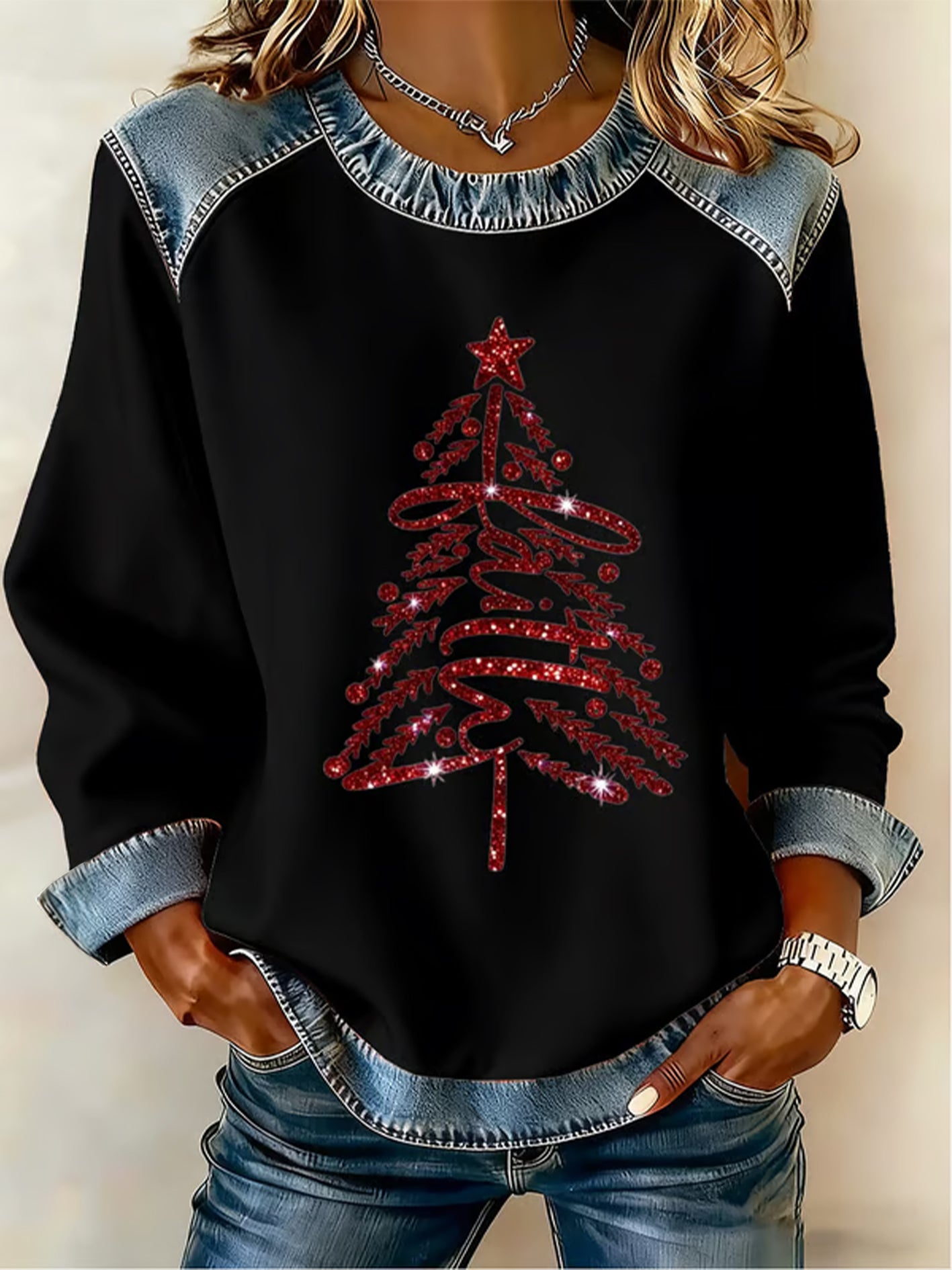 Women's Christmas Belief Pattern Patchwork Art Sweatshirt