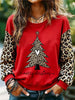 Women's Leopard Christmas Tree Print Casual Sweatshirt