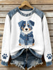 Women's Lovely Australian Shepherd Pattern Denim Patchwork Waffle Sweatshirt