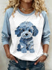 Women's Lovely Dog Pattern Denim Patchwork Sweatshirt