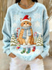 Women's Vintage Christmas Cat Printed Flannel Sweatshirt