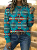 Women's Vintage Western Aztec Art Drawstring Sweatshirt