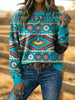 Women's Vintage Western Aztec Art Drawstring Sweatshirt