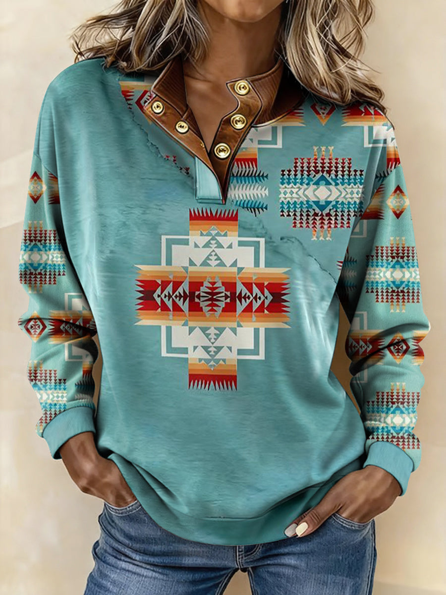 Women's Vintage Western Ethnic Aztec Pattern Casual Sweatshirt